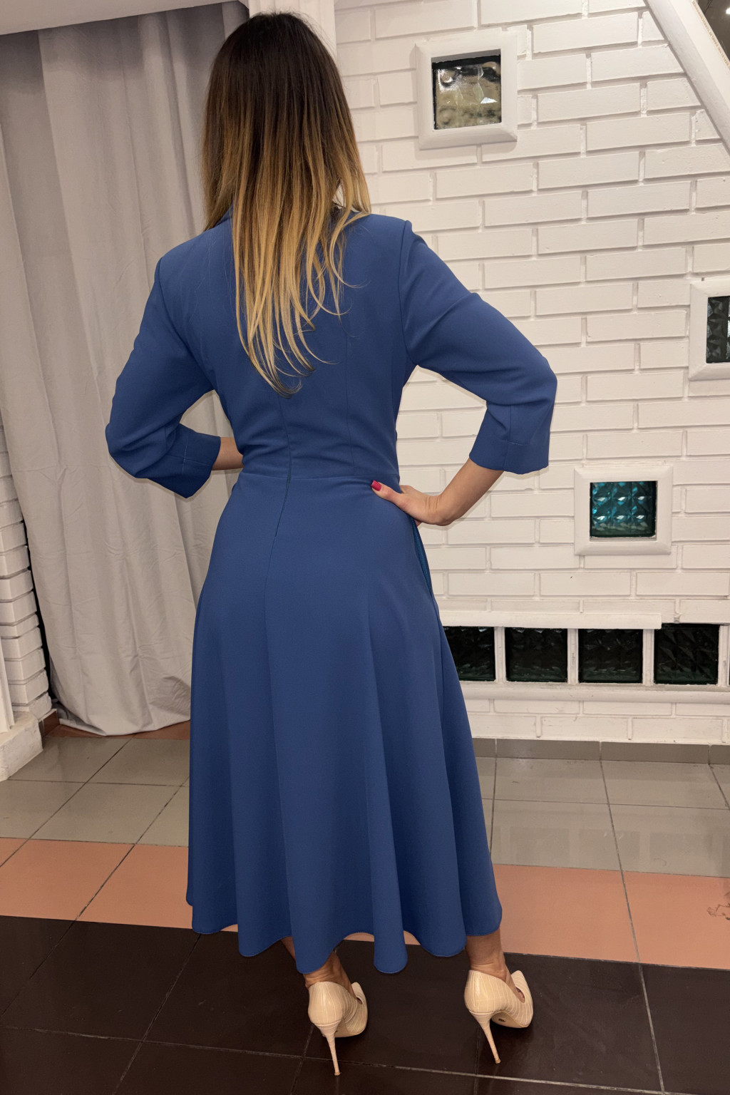 Mosás 30 °C vízben,kézi programon mosható, vasalás maximum 110 °C kifordítva, klóros fehérítés nem alkalmazható, szárítógép nem alkalmazható!Egyéb információ:Ruháink az európai konfekció méretnek felelnek meg.A modell által viselt méret: 40A modell méretei: 160 cm magas, S méret