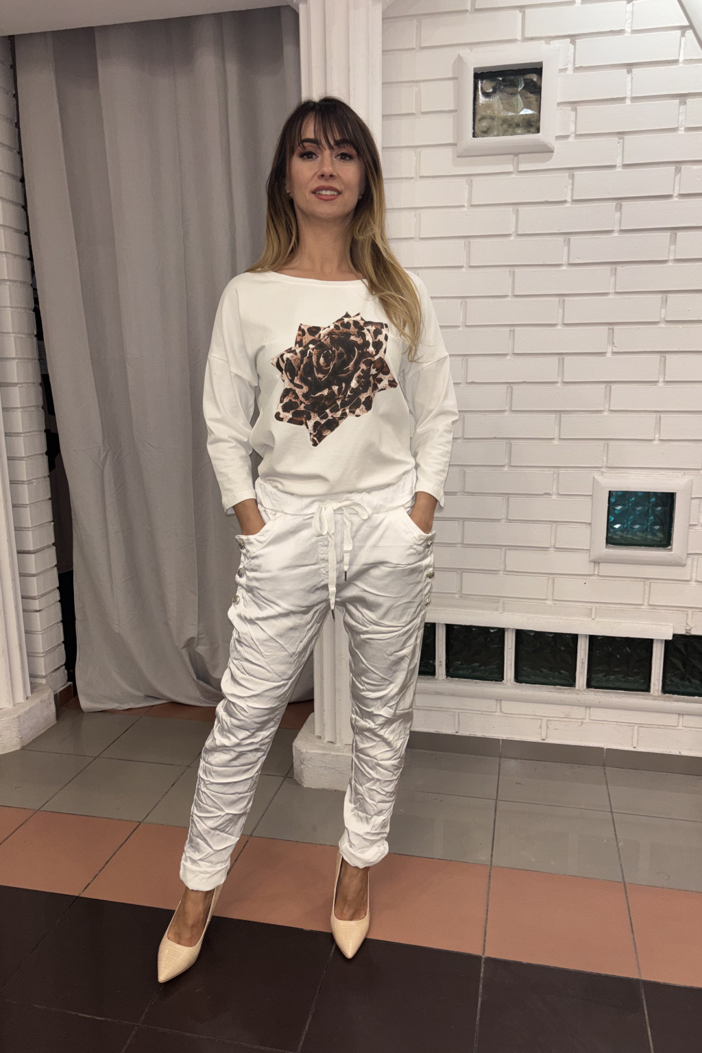 Santorini button side jogger – fehér